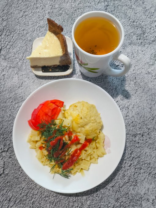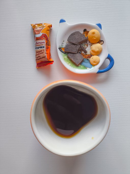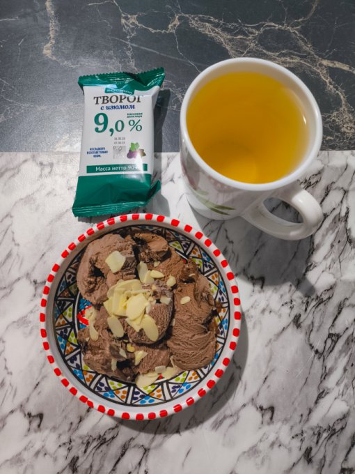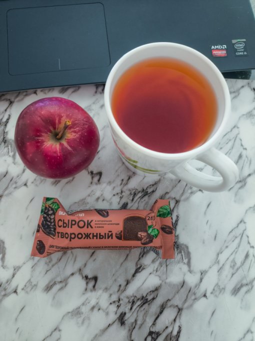• Перекус: чай черный, яблоко, сырок творожный глазированный с какао в молочном шоколаде.