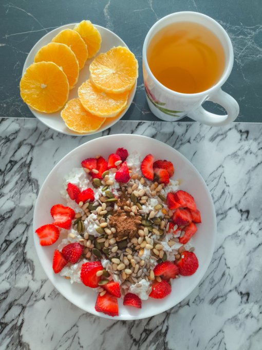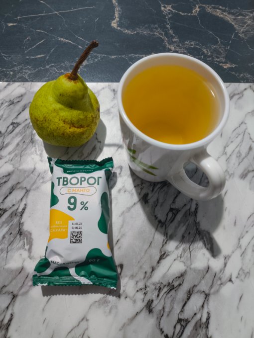• Перекус: чай зеленый, груша, творог с манго без сахара.