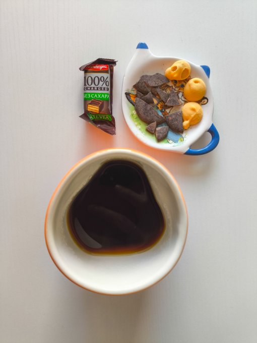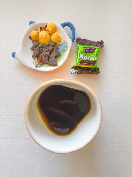 • Перекус: кофе в воронке Оригами, белый шоколад без сахара, какао тертое в плитках, овощные пастилки Тыква.