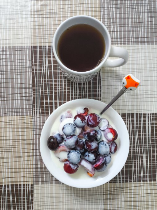 И снова нужно было доесть еду, в этом случае оладьи, поэтому сделала достаточно большой вечерний перекус. Мороженое изначально не хотела есть, но сегодня же Всемирный день мороженого. Увидела такую информацию в Интернете, поэтому все это и съела.