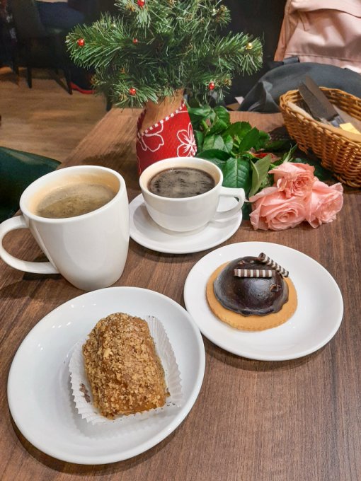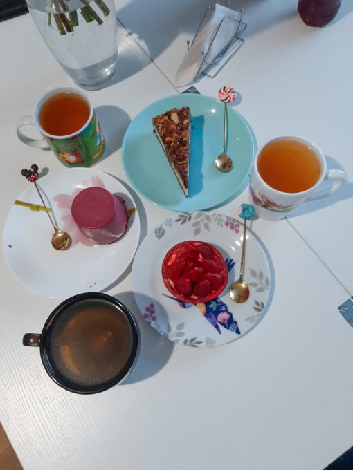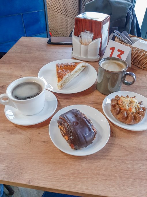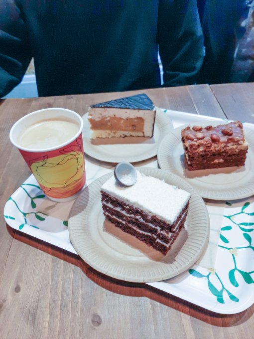 *Сладкое. Наконец доела многострадальный бублик, и на десерт во время обеда попробовала 3 пирожных (разделили на троих).