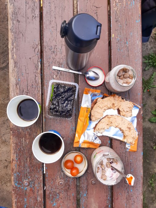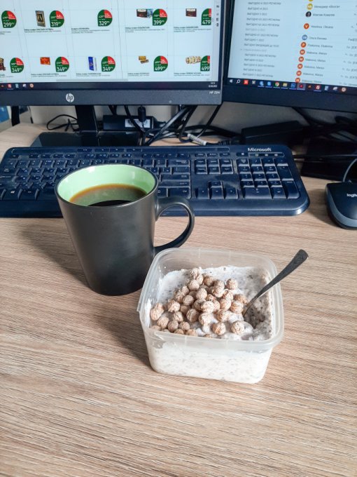 • На перекус кофе чёрный, разные урбечи и кусочек сыра.