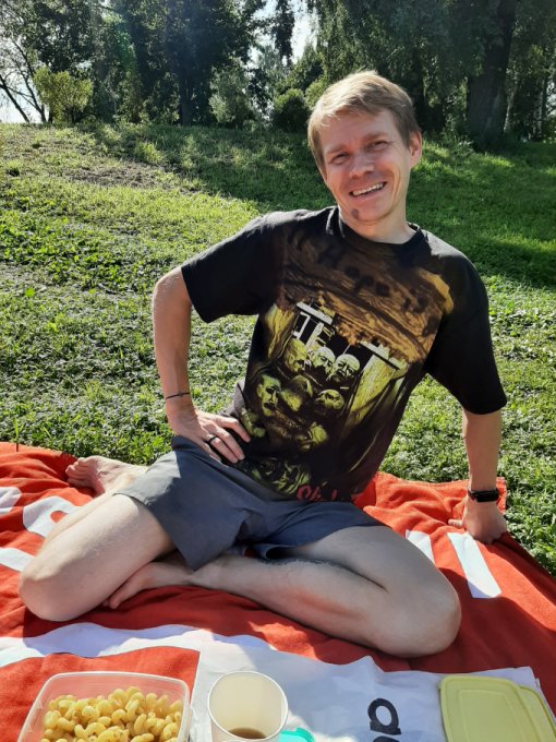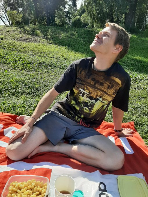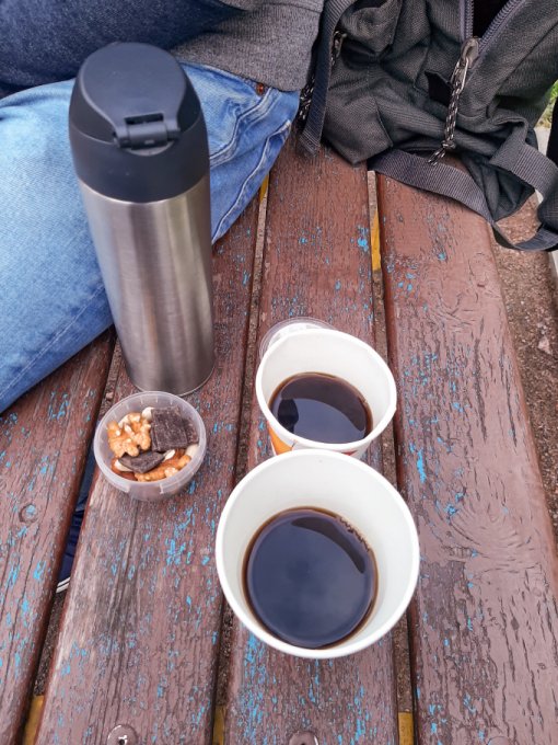 После работы встретилась с Колей. Он предложил выпить кофе, сварил дома и принёс в термосе. Хорошо посидели, я немного перекусила. Жаль, что недолгой была встреча. Нужно было торопиться домой, чтобы приготовить ужин, а то голодная.