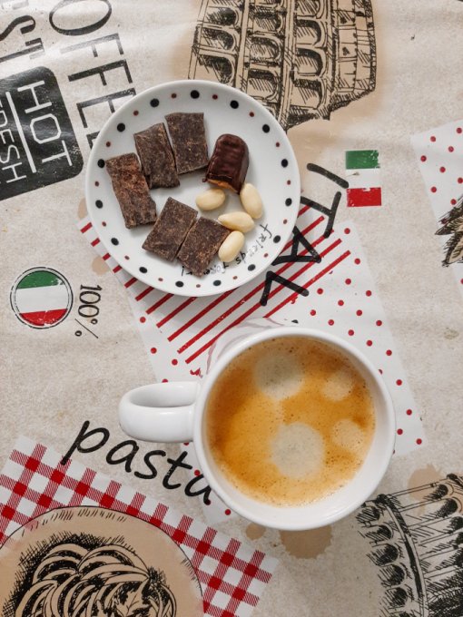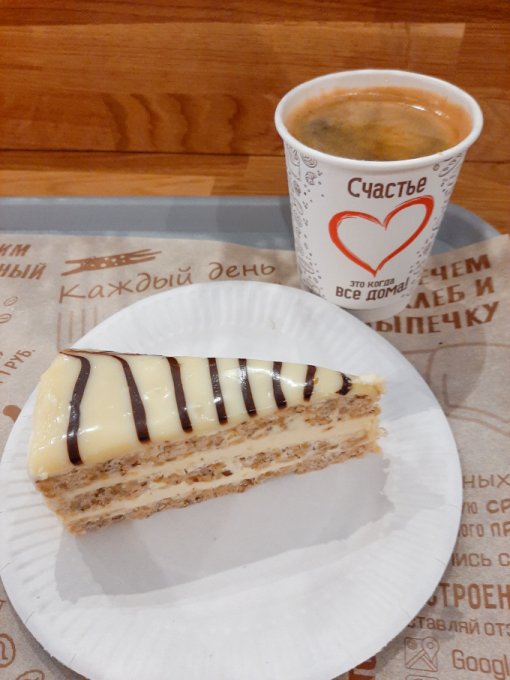 • На перекус кофе чёрный, торт Эстерхази, ½ конфеты Коровка.