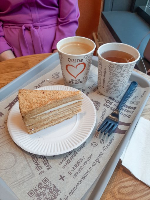 • На перекус кофе чёрный, немного торта Медовик.