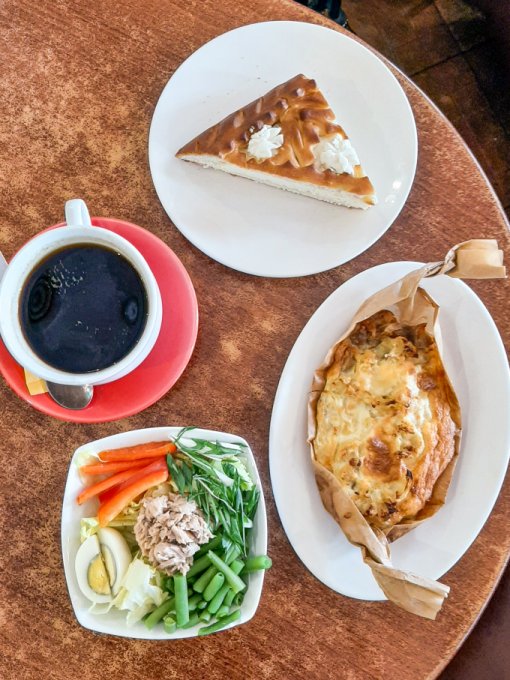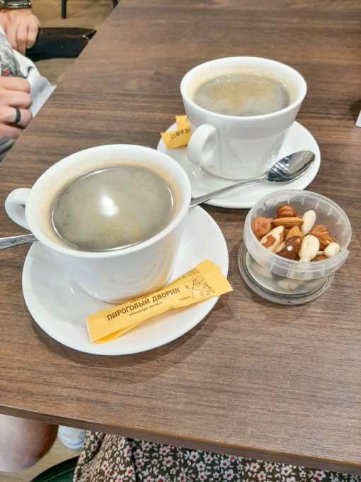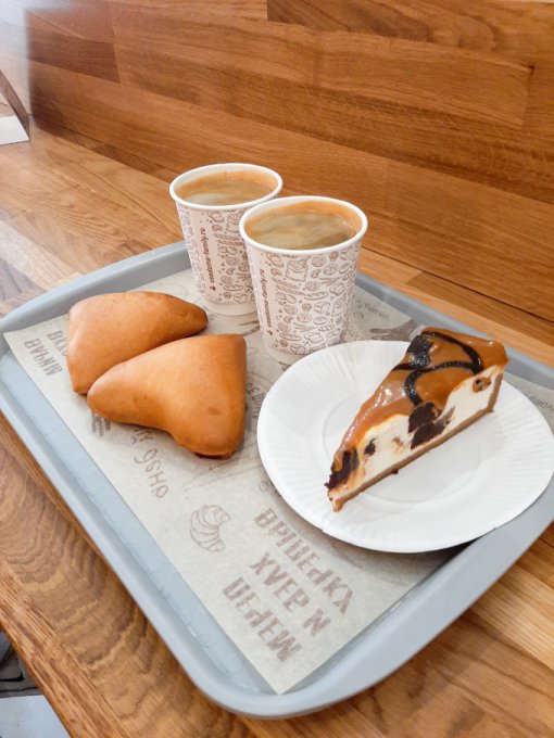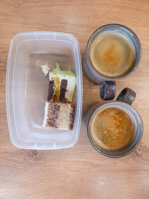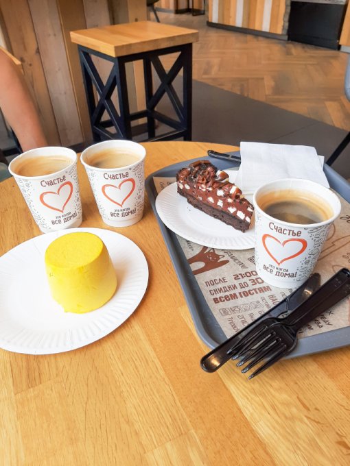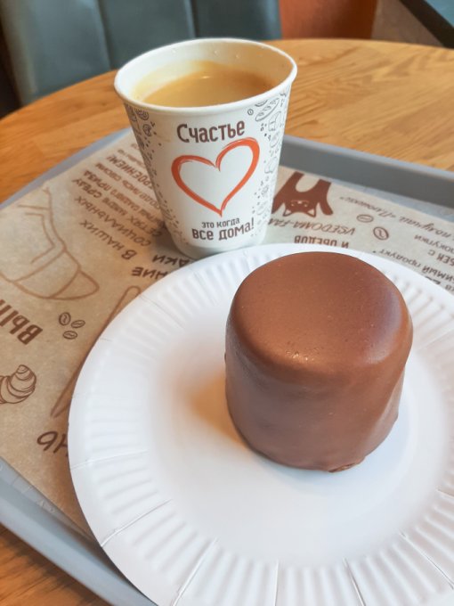 • На перекус кофе чёрный, пирожное Манго-маракуйя, немного тортика с маршмеллоу.