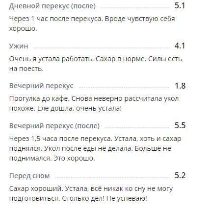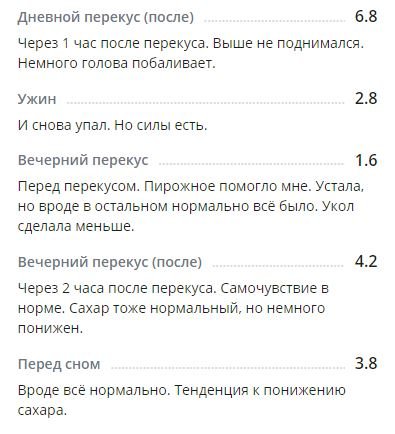 Перекус = 2,1 ед. Сделала 1 единицу короткого инсулина.