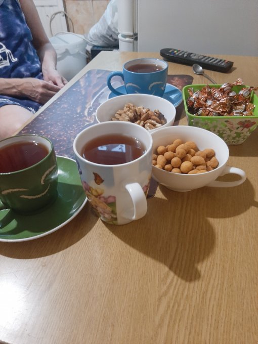 • На перекус чай с мятой, арахис в глазури, арахис, миндаль, грецкие орехи.