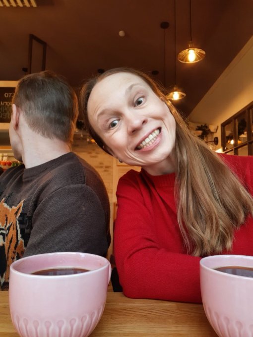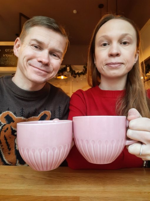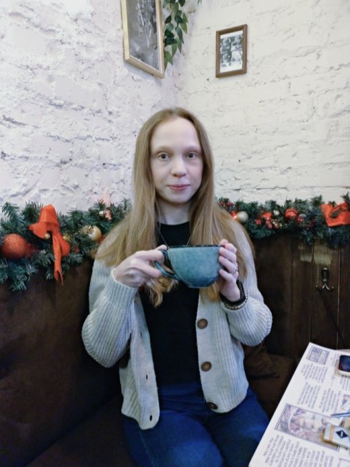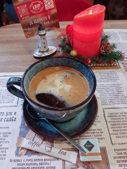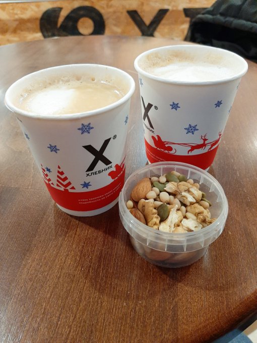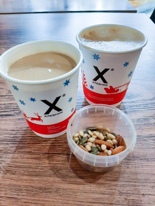 Вечером Коля приехал. Встретила его у остановки, почти вовремя успела. Потеплело, поэтому он обещал, что мы пойдём в кафе, подальше, чем обычно, не замёрзнем. Ура! Старое-новое место, как раз для старого Нового года. Шли мы достаточно долго, в одну сторону 45 минут и обратно столько же, а это в общем примерно 7 км. Хорошая такая прогулочка получается. В кафе посидели хорошо. Я хотела выпить кофе из новогоднего стаканчика. Сегодня же праздник, нужно что-то волшебное, праздничное. Однако выбрали кофейню с обычными чашечками, не с бумажными, так даже уютнее. Здесь лучше, красиво всё украшено, мне понравилось, чувствуется праздник. Выпила самую большую порцию кофе за всю свою жизнь, 500 мл, чтобы вы понимали, за один раз, никогда столько себе не позволяла. Попросила Колю и он купил. Фото с большой чашкой прилагаю. Хотя особо и не понятно, что она больше стандартной порции. Кофе вкусный был. Посидели достаточно длительное время, наверное также 45 минут, как и путь в одну сторону. А потом обратно до дома шли. Хорошая прогулка получилась. Шагов за сегодня много, очень рада этому.