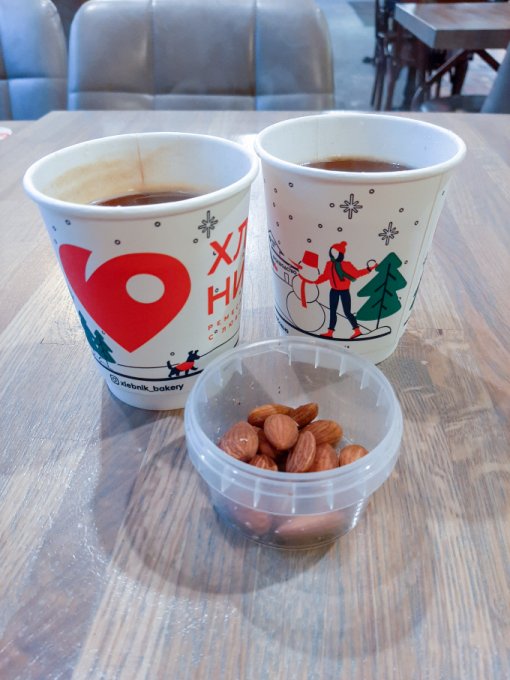 • На перекус кофе и миндаль в кафе.