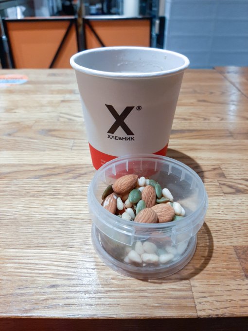 • На перекус выпила кофе чёрный с миндалём и тыквенными семечками.