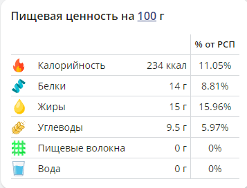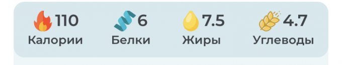 | Кол-во | Калории | Белки | Жиры | Углеводы | |