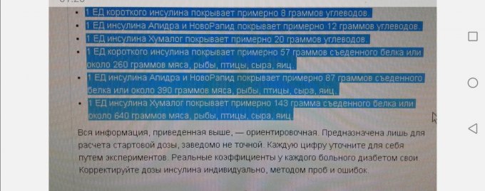 Короткий инсулин на еду колите многовато, так как используйте метод расчёта для короткого инсулина, а это много. Ультракороткий инсулин усваивает 90 грамм белка или 12 грамм углеводов, но опять же этот расчёт расчитан для кето.