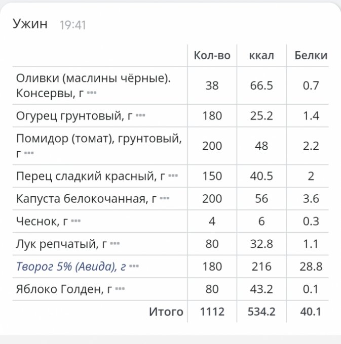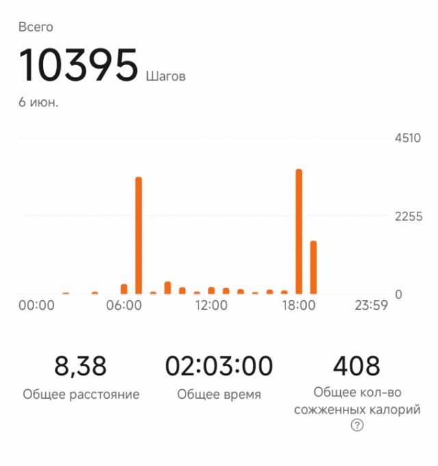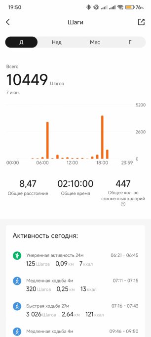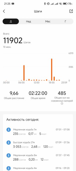 | Итого за день | 6548 | 2366 | 138 | 80 | 162 |