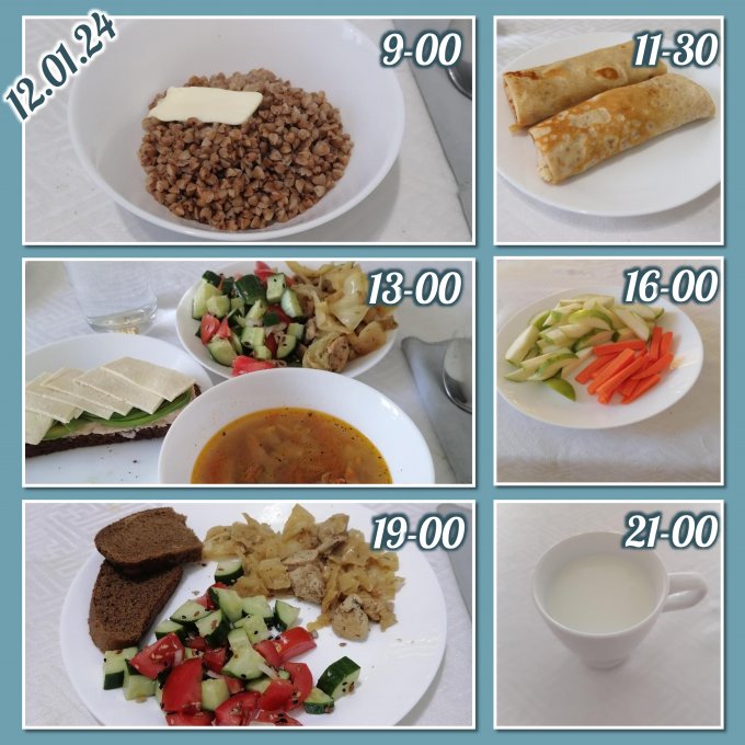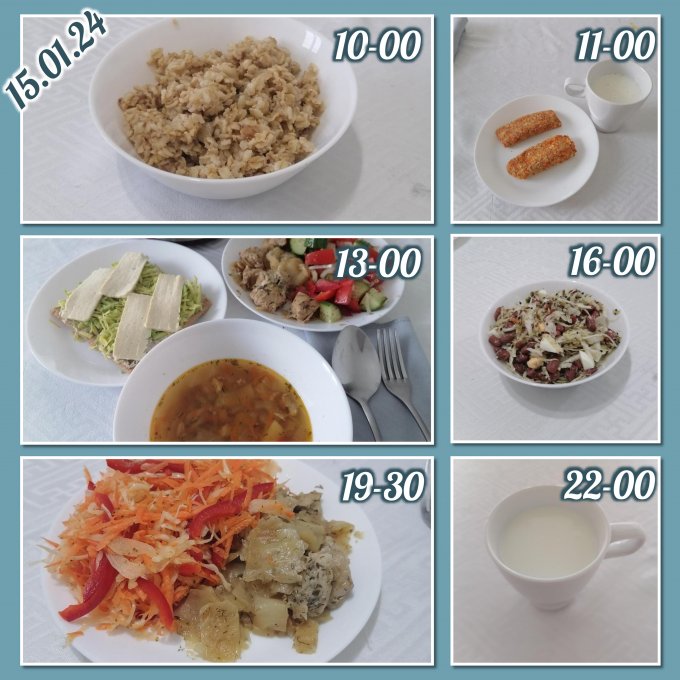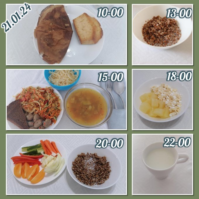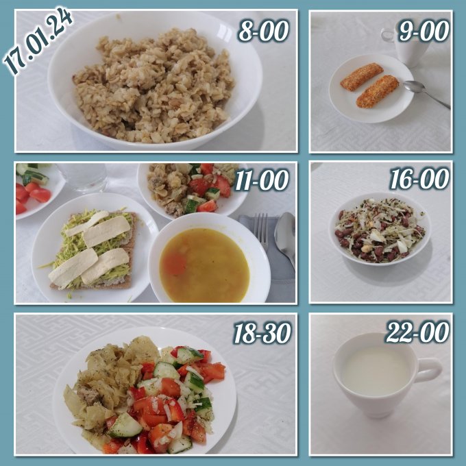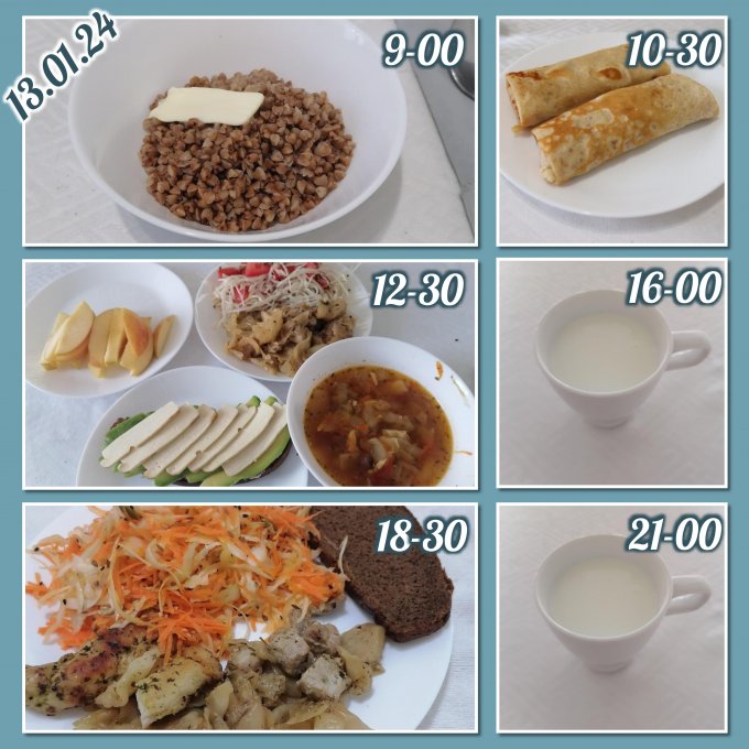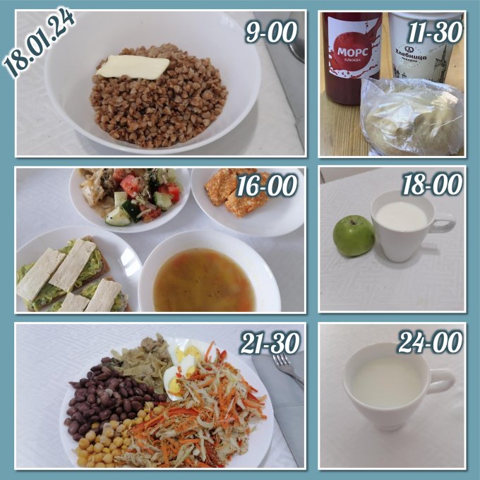 | Итого за день | 3605 | 1760 | 100 | 74 | 162 |