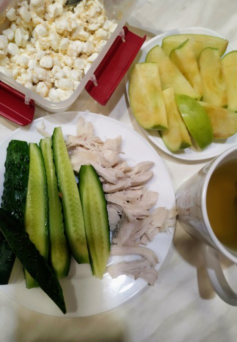 Обед и ужин были у меня прям не очень правильными)) но вписалась в целом во всё, хоть и белка недобор и клетчатки. И рейтинг продуктов не очень. Стараюсь держать всё в зелёных пределах. Завтра буду осознанней, уже сегодня купила еды полезной))а то на обед мужу с собой только мясо было на тормозок, себе купила сосиски🙈