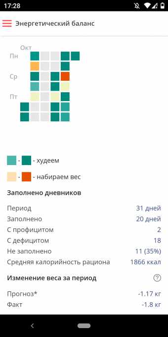 В ноябре буду уменьшать среднесуточную калорийность, а то как-то уж очень на расслабоне я худею, так неизвестно к какому новому году цели достигну))