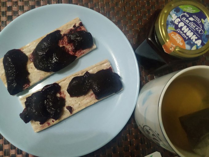 Сегодня купила черничный джем без сахара. Привлекла акция - 50%. Да и никогда не пробовала чернику, вот решила попробовать в виде джема. Не знаю с чем сравнить вкус, приятно, но лёгкое послевкусие лекарственной травы какой -то. Может, черника, такая и есть на вкус...