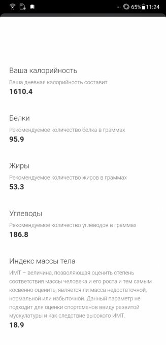 Получилось 2430 калорий. Увидя это я изменил каллораж употребляемой