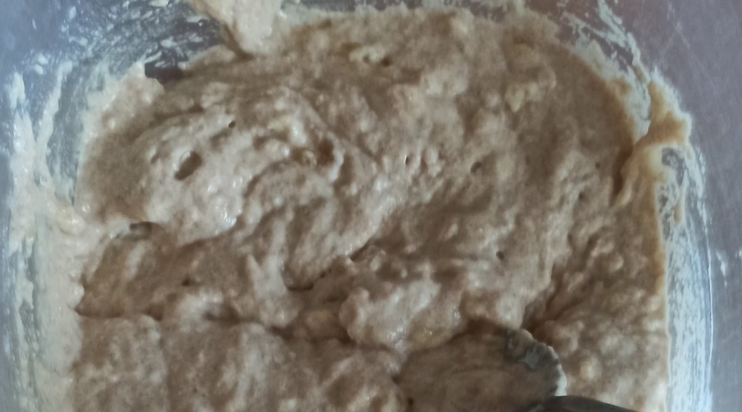 Приготовила муку,воду, ванилин, соду, банан, кефир.