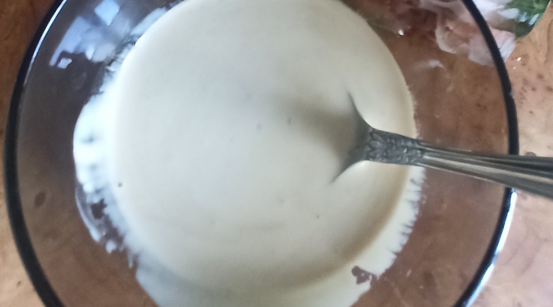 Приготовьте соус - смешайте горчицу, сметану, соевый соус , в пропорциях, описанных в составе.