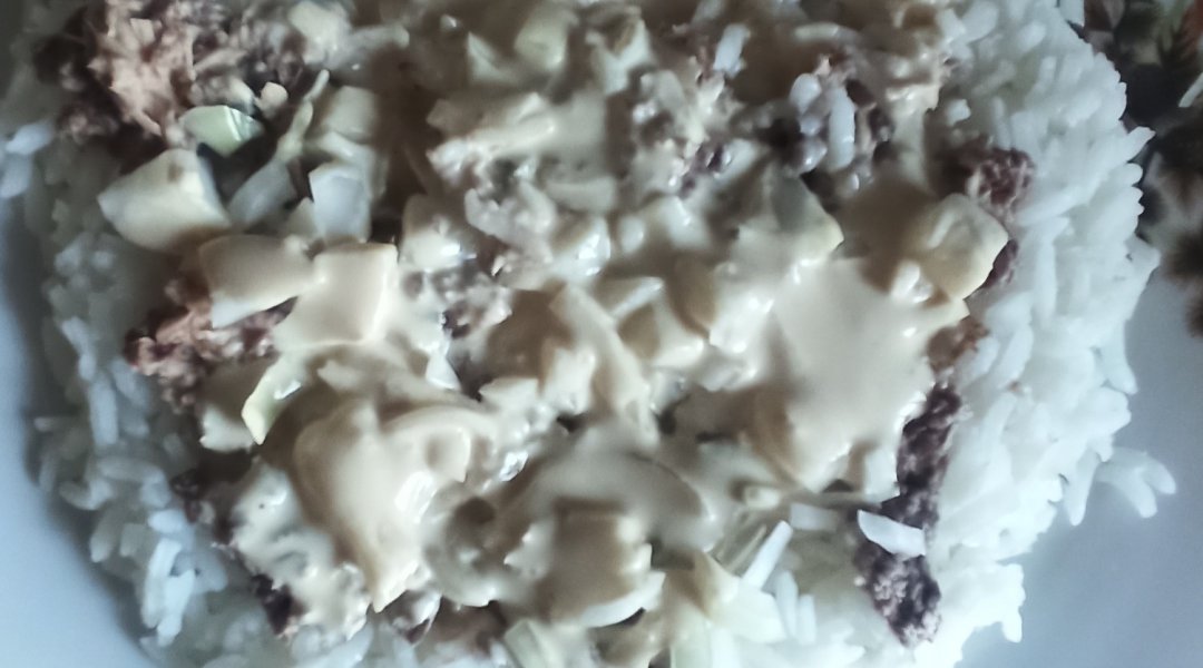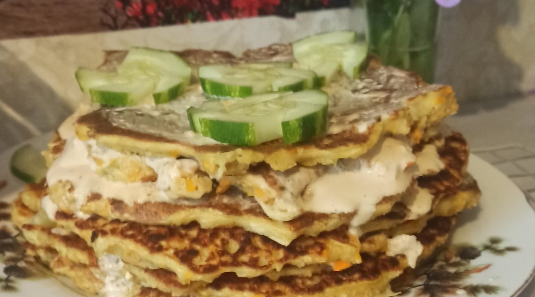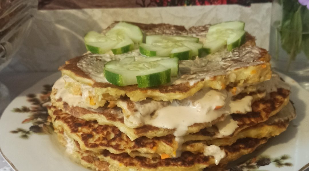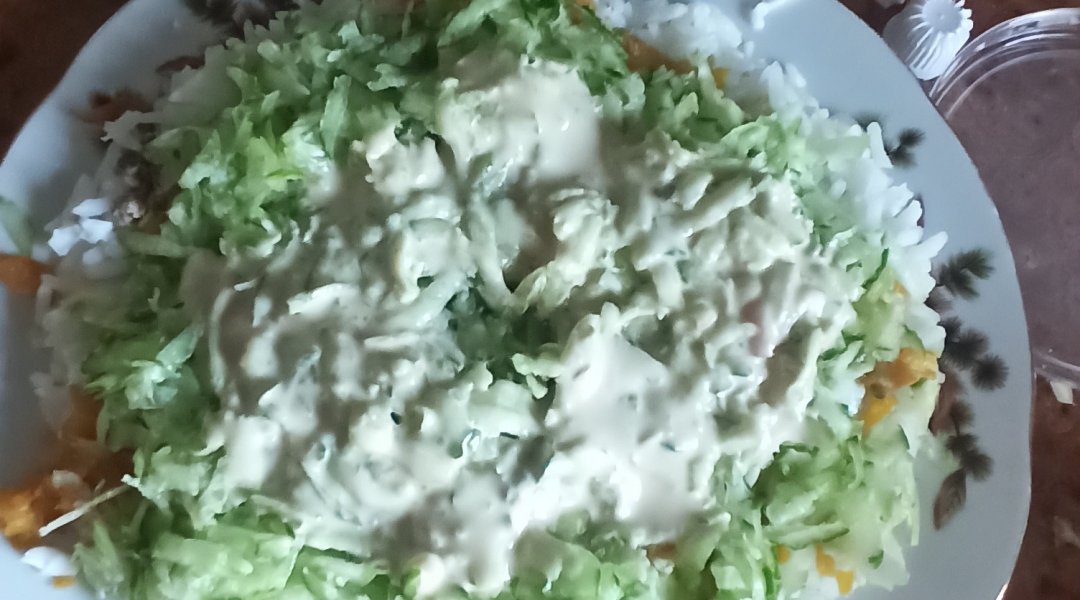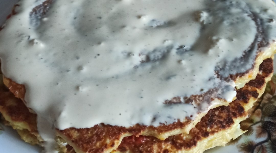 Это мимоза приготовлена без картошки и майонеза. Соус сделан на основе сметаны.