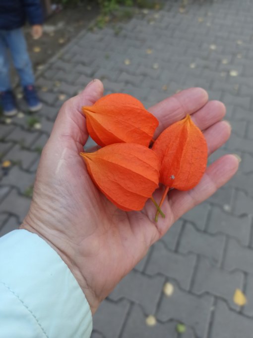 Гуляли прилично, немного не дотянули до нормы. Она у нас 6 км перед сном. Порвали физалис, люблю его, чудо природы.