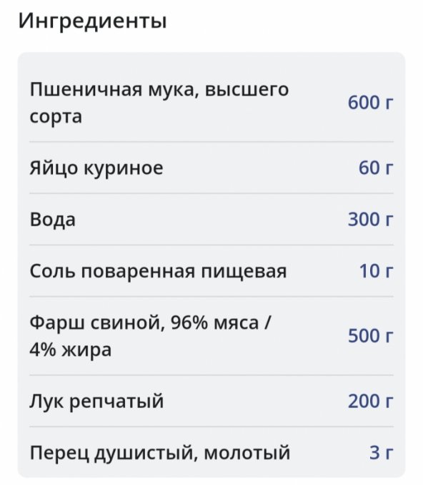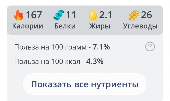 | Кол-во | Калории | Белки | Жиры | Углеводы | |