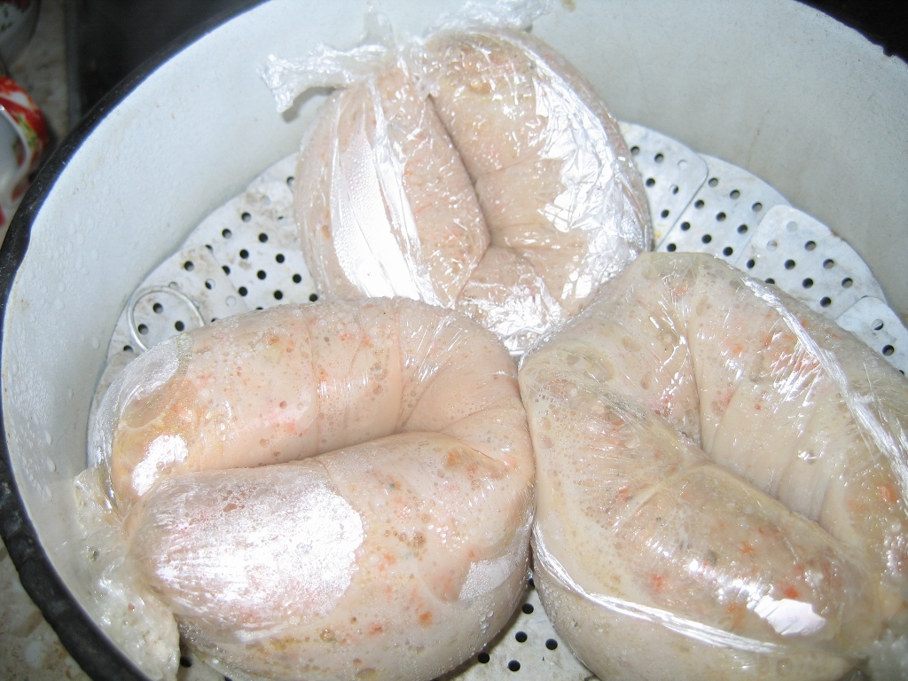 выложить на нее три колбаски и пароварить 55-60 мин. Навеяно