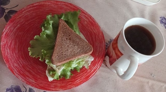 Традиционно по будням на завтрак бутерброд с яйцом и кофе. Калории