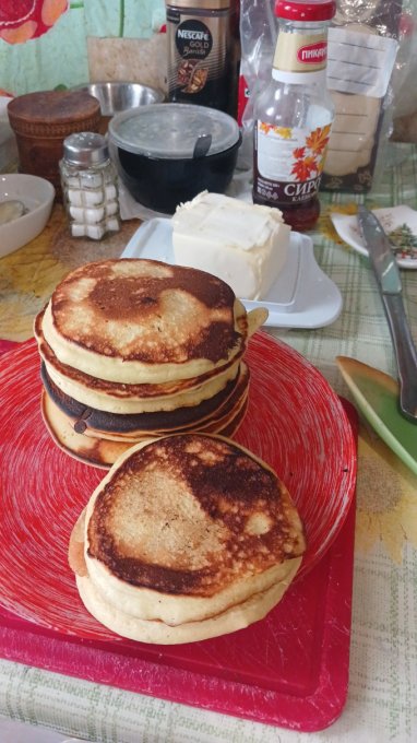 обед суп на бульоне из-под вчерашней курицы и панкейки на утиных