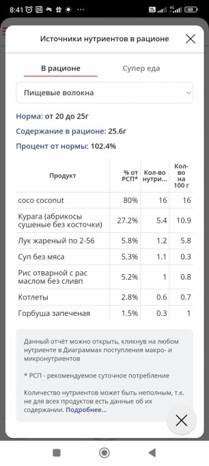 Чтобы увидеть отчеты по питанию и график веса, необходимо войти.