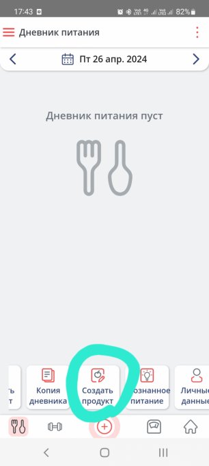 Внизу дневника есть закладка ""создать продукт"" введите данные и сохраните, больше не знаю как
