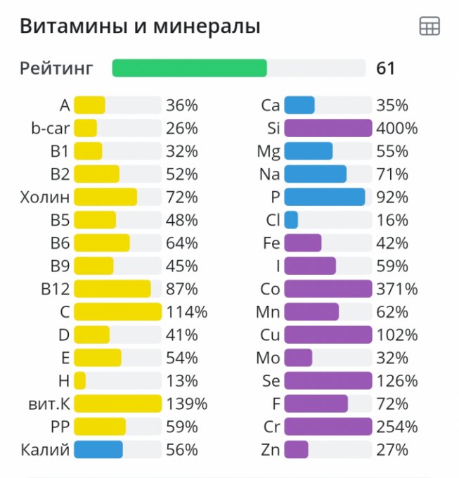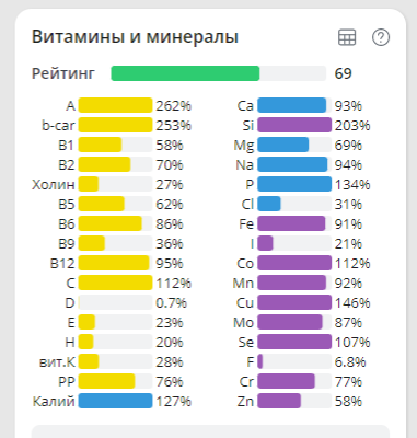витаминов и минералов достаточно и нет перекоса. Вот для сравнения-