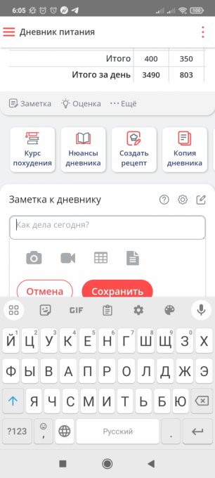 | Итого за день | 2368 | 1500 | 80 | 68 | 133 |