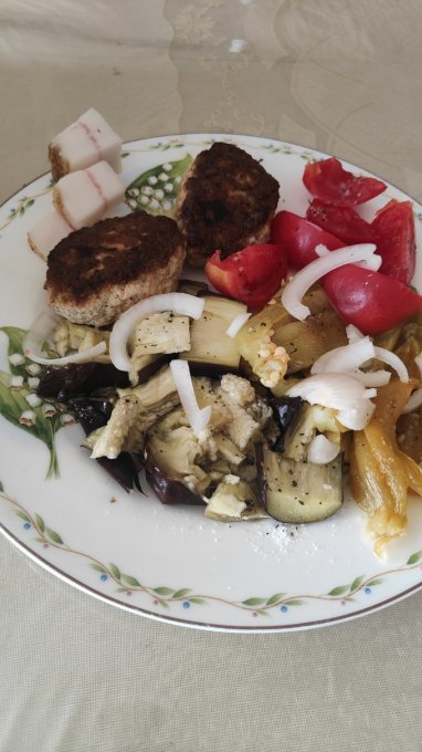 | Овощи запеченные (кабачок, баклажан, помидор, перец, лук) |