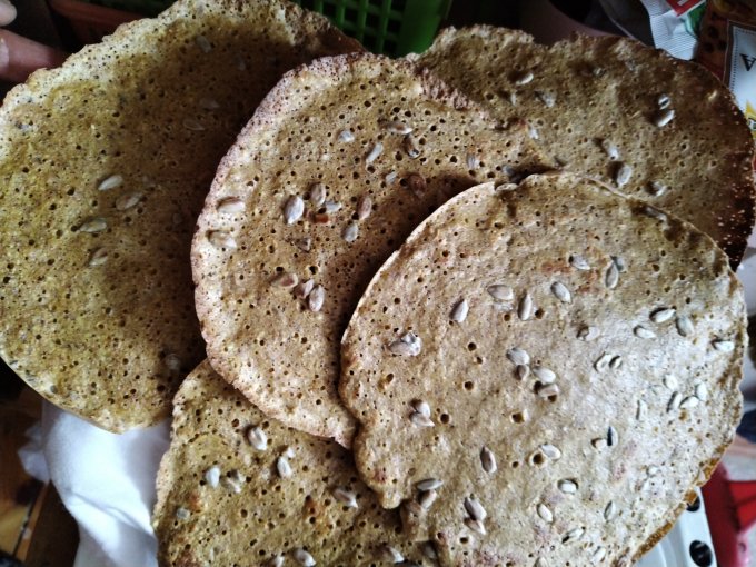 Обедо-ужин : заливной пирог на арахисовой муке с филе индейки.