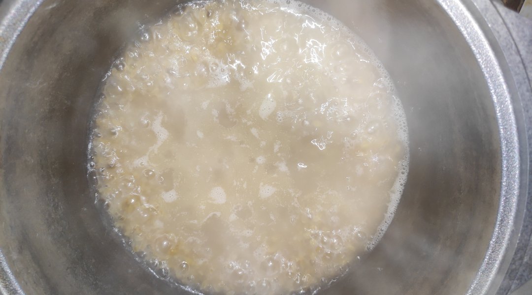 В кастрюлю с толстым дном вылить столовую ложку растительного масла. Параллельно поставить 400 мл подсоленой воды.