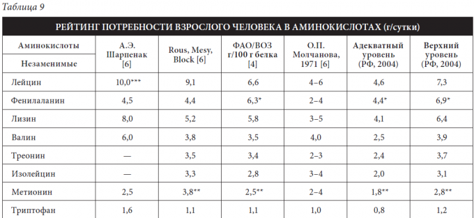 Значение по незаменимым аминокислотам я брал из данных ВОЗ и РФ и своего опыта.  Также использовал сравнительную таблицу из медицинского периодического издания.