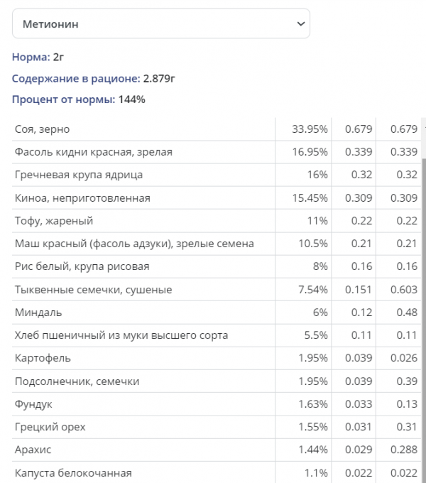 Метионин ( см. Таблицу )