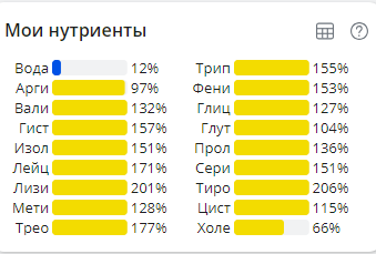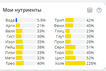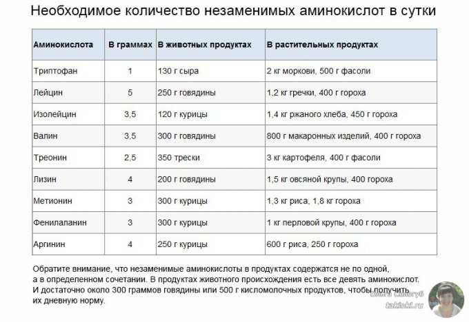 показателей. Жирные кислоты есть в таблице, а аминокислот нет