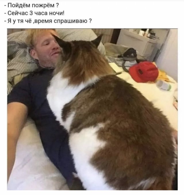 С таким теплым мягеньким котиком сразу уснешь ,и есть не захочешь .