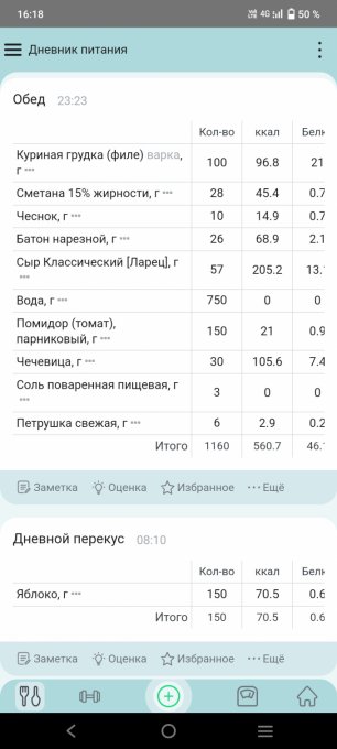 | Итого за день | 750 | 0 | 0 | 0 | 0 |