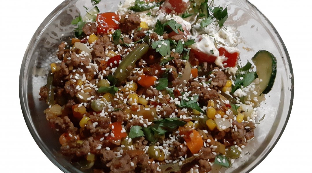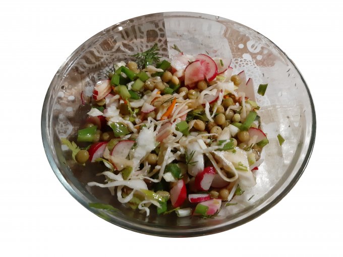 | Салат ассори: редис, квашенная капуста, зелёный горошек, зелень ассорти |