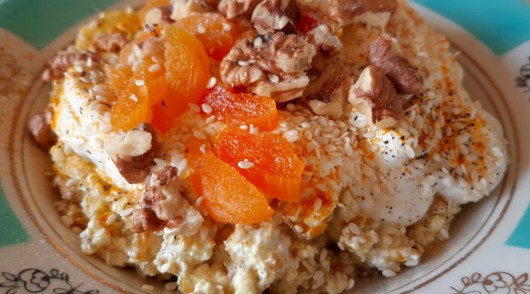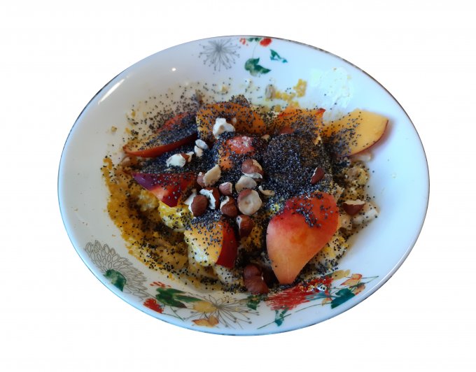 | ДЕСЕРТ ТВОРОЖНЫЙ: киноа, фундук, нектарин, мак, куркума, перец, ванилин |