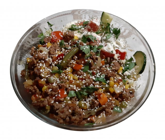 | Говядина, фарш, 90% постного мяса/ 10% жира, сырая | 400 г |