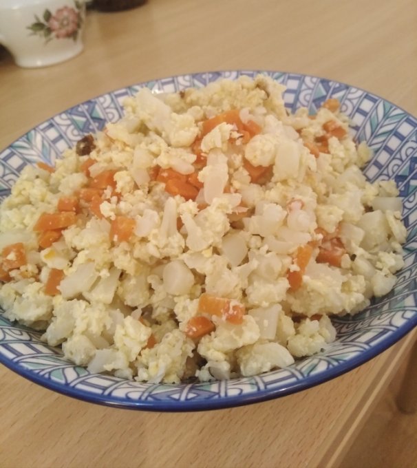 Утром цветная капуста с морковкой и яйцом (этих можно было бы и больше).