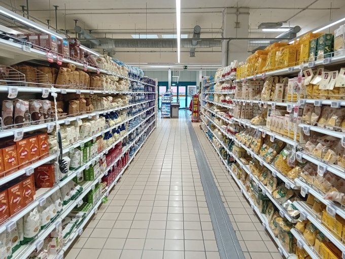 Покажу вам мой ближайший супермаркет, Conad. Он большой и