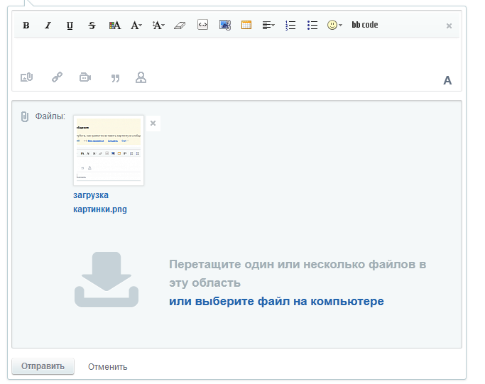 буквами "загрузить рисунок", а на поле самого сообщения (белого