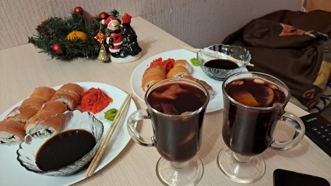 На столе горячий глинтвейн, и первая совместно приготовленная
